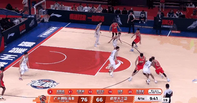 CBA常规赛,广州对阵南京的比赛正在进行中。