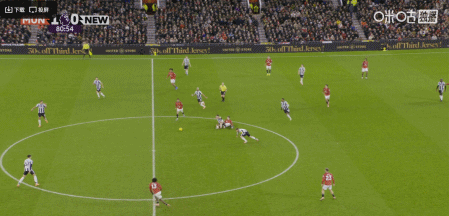 比赛末段,曼联曾经获得过一次反击机会,但在马特乌斯-库尼亚中路带球推进,左路多古努力跑位的情况下,右路的齐尔克泽却是匀速向前,最终没有找到出球机会的马特乌斯-库尼亚选择单干勉强射门偏出。