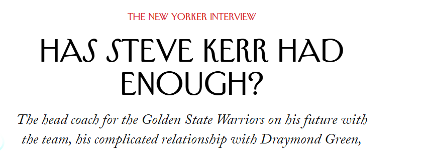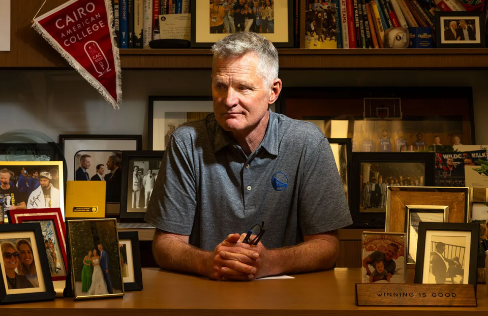 北京时间4月27日,勇士主帅科尔在自己的书房接受《纽约客》采访,深度畅谈自己在球队的未来,与格林的复杂关系、乔丹与詹姆斯、库里的比较等话题。科尔甚至主张联盟取消三分线。整个采访持续了两个小时,以下是精选部分——