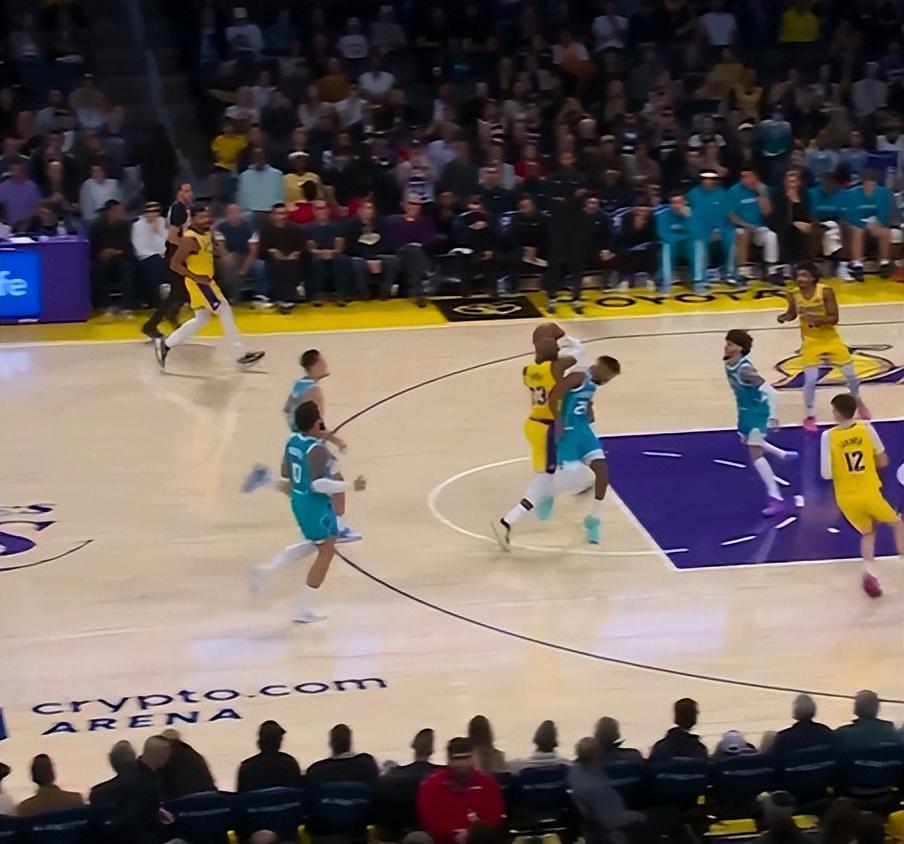 湖人对阵黄蜂的比赛进程让人没有想到,湖人队竟然和东部倒数第4名打的有来有回,詹姆斯在比赛当中的一个回合引爆了争议和讨论,他直接肘击对手球员米勒,裁判竟然吹了对方的犯规,甚至连挑战都失败了。